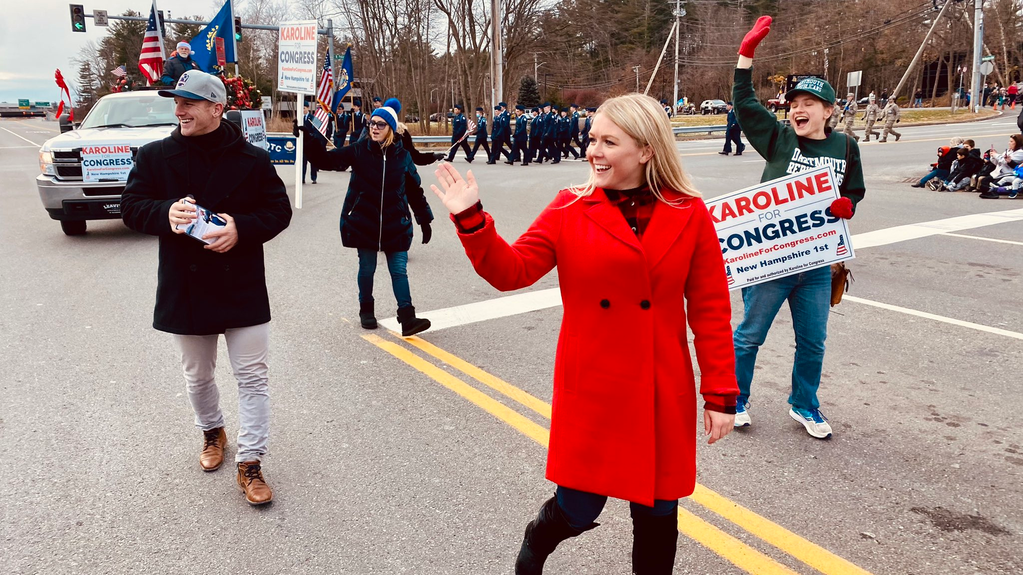 Leavitt walking in a Christmas parade in Salem, NH last December.