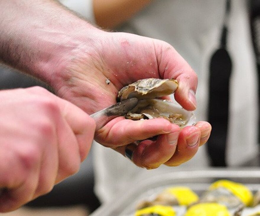 As demonstrated by Greg Voisin of Motivatit Seafoods, here are the basic steps for shucking an oyster:
