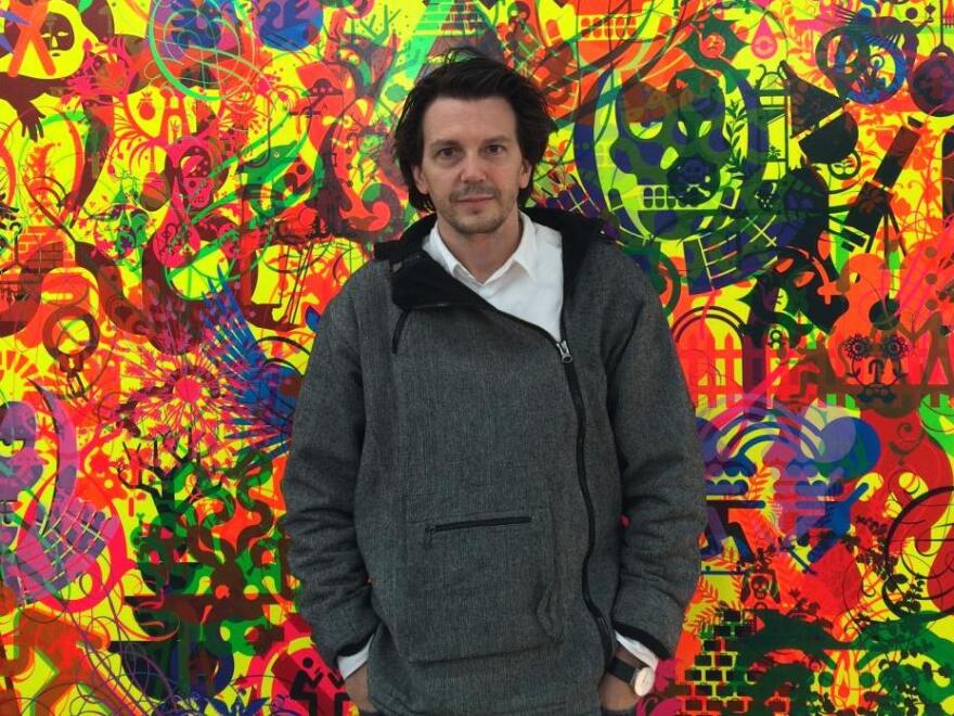 It’s the art studio of visual artist Ryan McGinness, and here, Russo recently had the pleasure to talk with the artist himself. Known for his slick, brightly-colored icons, McGinness frequently displays his works and designs on various platforms on top of the traditional museum and gallery—like cognac bottles, playing cards, street signs, and interstate billboards. But when asked about a possible collaboration with different artists, McGinness responds, “No, I think that’s an awful idea. You know what? I’m not interested in diluting anyone’s work anymore than I’m, you know, interested in having my own work diluted.”
